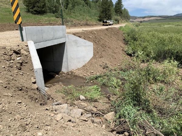 The new culvert has a larger concrete box bridge with a natural bed, to help improve fish passage. Yellowstone cutthroat trout use this stream for spawning and rearing.